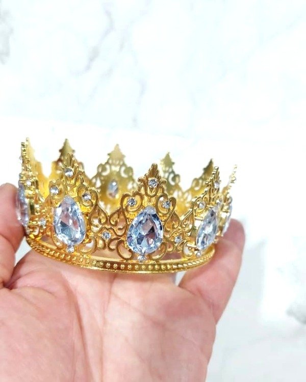 Corona de metal color plateada ó dorada con strass. Medida aprox 8 cm de diámetro