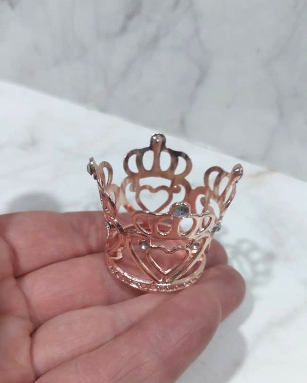Corona de metal color plateada , rosa gold ó dorada con strass. Altura aprox 3 cm