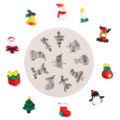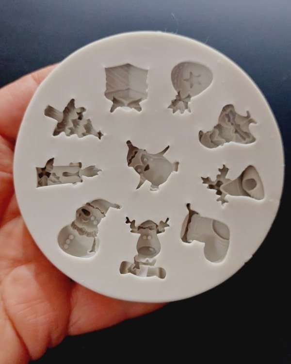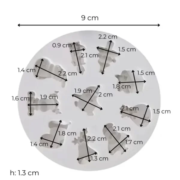 Molde de silicona miniaturas de navidad , medidas en las fotos, para trabajar con masas comestibles y porcelana fría.