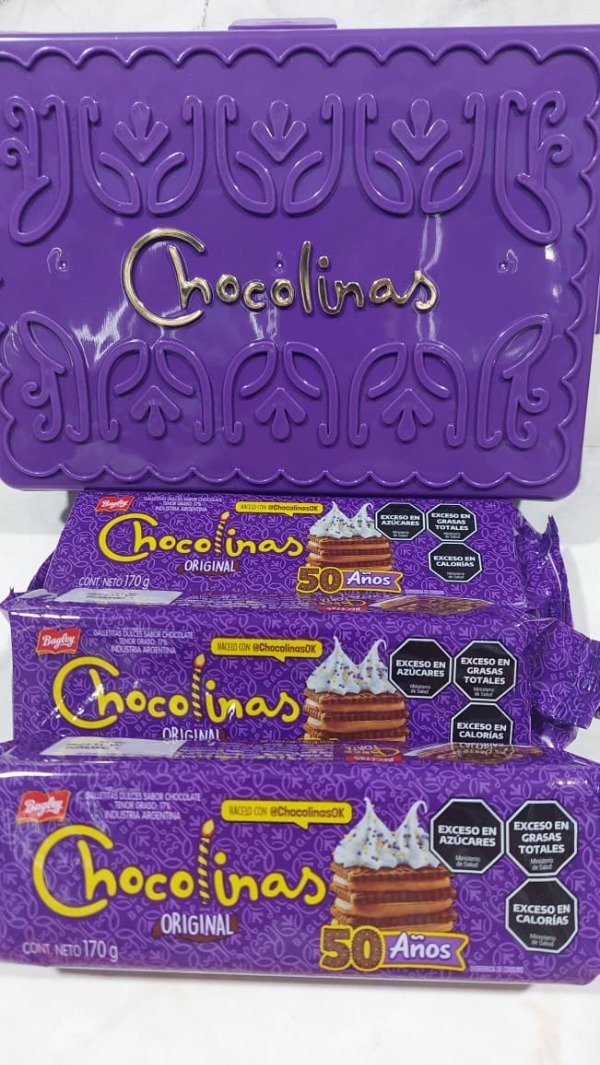 Caja desmontable para chocotorta , medida 24 x 16 x 6 cm de alto . Incluye 3 paquetes de galletitas de chocolina de 170 grs